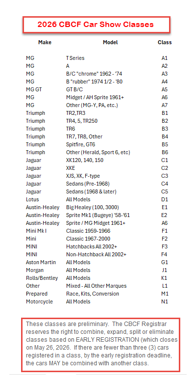 We strongly encourage everyone to pre-register online by end of day May 26th, 2026. Registration is available online or Day-of-Show. There is NO Mail-In option for 2026.